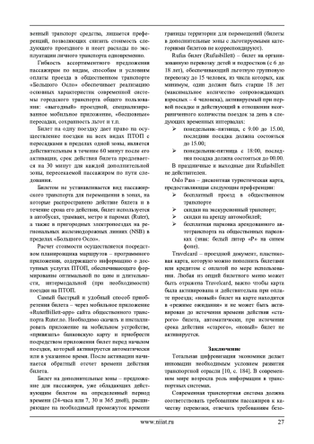 В данной статье авторами отмечается рост активности процессов цифровизации в современной экономике и рассматривается влияние вызовов современности на транспортную отрасль. Выполнен обзор организации работы транспортной системы городской агломерации «Большого Осло». На основе изучения иностранного опыта отмечена перспективность использования тарифного меню для увеличения уровня покрытия затрат перевозчиков доходами от оплаты проезда.