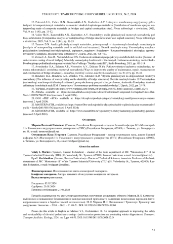 18. Влияние гидроизоляции на долговечность мостовых сооружений / Б.А. Бондарев, А.Б. Бондарев, В.К. Жидков, К.Д. Ишматов // Современные проблемы материаловедения: сборник научных трудов III Всероссийской (национальной) научно-практической конференции, посвященной памяти д.т.н., профессора, академика Российской академии архитектуры и строительных наук Е.М. Чернышова. - Липецк, 2022. - С. 75-79. EDN: NTYHGF