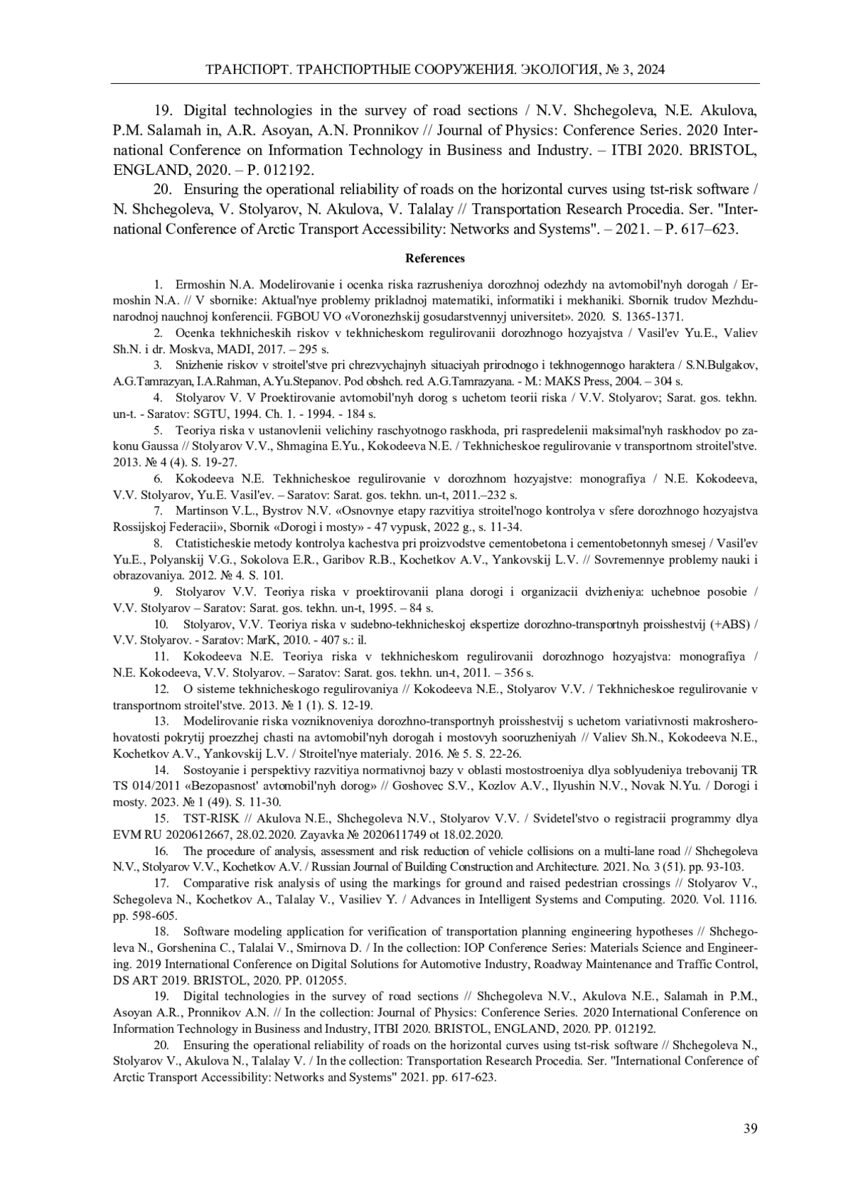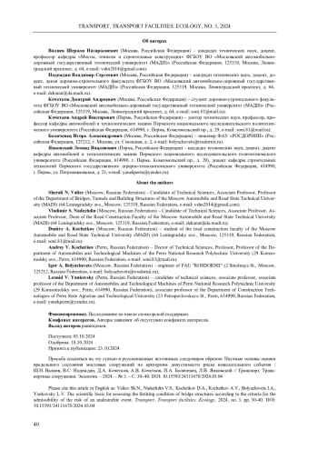 Журнал: ТРАНСПОРТ. ТРАНСПОРТНЫЕ СООРУЖЕНИЯ. ЭКОЛОГИЯ