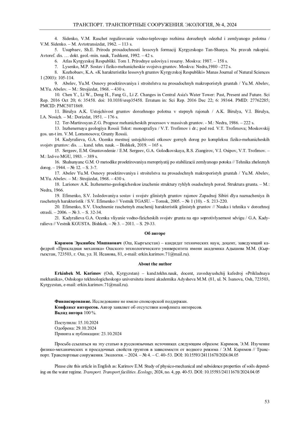 21. Кадыралиева, Г.А. Оценка влияние водно-физических свойств грунта на его сопротивляемость сдвигу / Г.А. Кадыралиева // Вестник КГУСТА. Бишкек. - № 3. - 2011. - С. 29-33.