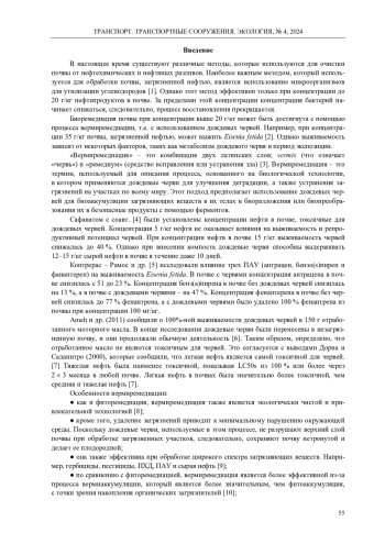 В настоящее время существуют различные методы, которые используются для очистки почвы от нефтехимических и нефтяных разливов. Наиболее важным методом, который используется для обработки почвы, загрязненной нефтью, является использование микроорганизмов для утилизации углеводородов [1]. Однако этот метод эффективен только при концентрации до 20 г/кг нефтепродуктов в почве. За пределами этой концентрации концентрация бактерий начинает снижаться, следовательно, процесс восстановления прекращается