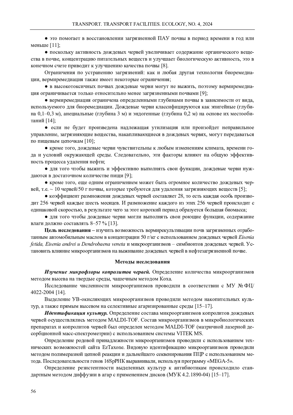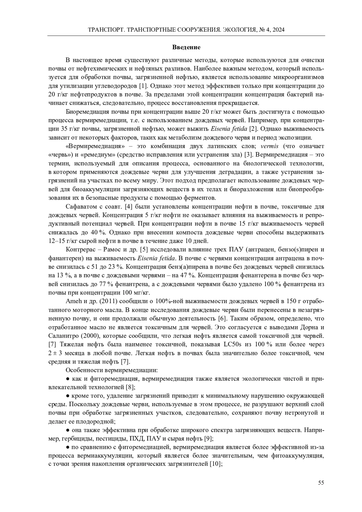 4. Safawat, H. Earthworms survival in oil contaminated soil / H. Safawat, S. Hanna, W. Weaver // Plant Soil. - 2002. - Vol. 240. - Р. 127-132. EDN: AZTZCX