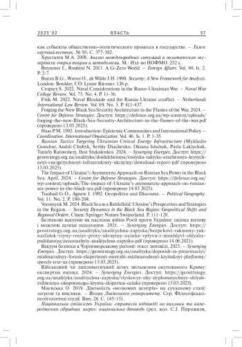 19. Vorotnyuk M. 2024. Black Sea as a Battlefield: Ukraine’s Perspectives and Strategies in the Region. - Security Dynamics in the Black Sea Region: Geopolitical Shifts and Regional Orders. Cham: Springer Nature Switzerland. P. 111-128.