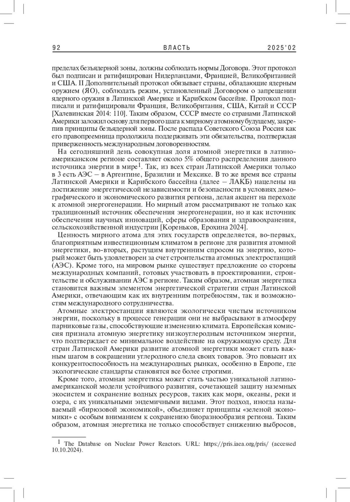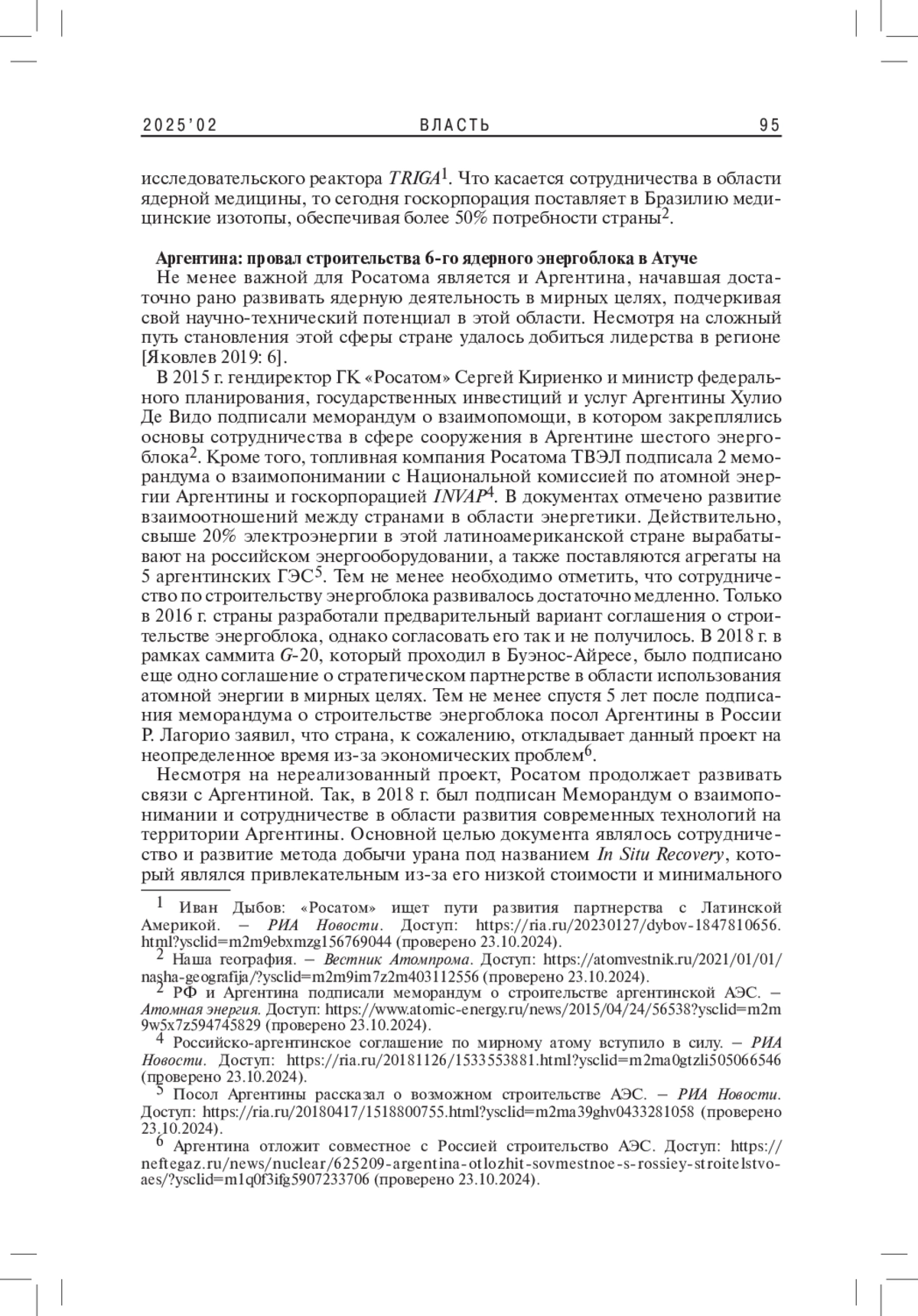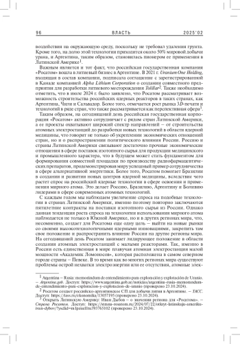 6. Яковлев П.П. 2019. Атомный век Аргентины (к 45-летию ввода в строй АЭС Atucha). - Латинская Америка. № 3. C. 5-17. EDN: YZAFBZ