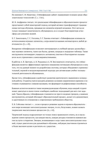 4. Караваев Н. Л., Соболева Е. В. Совершенствование методологии геймификации учебного процесса в цифровой образовательной среде: [монография]. Киров: Вятский государственный университет, 2019. 105 с. EDN: JWDVPX