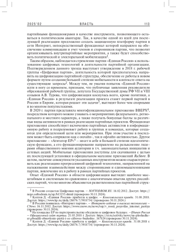 Цифровые технологии являются непосредственным атрибутом деятельности политических партий, а факт их внедрения в процесс партийного строительства обусловливает актуальность обращения к анализу их применения в современной России в исследовательском контексте.