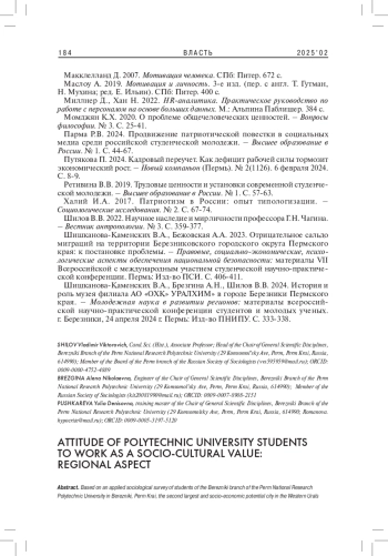 15. Ретивина В.В. 2019. Трудовые ценности и установки современной студенческой молодежи. - Высшее образование в России. № 1. С. 57-63. EDN: YURZVB