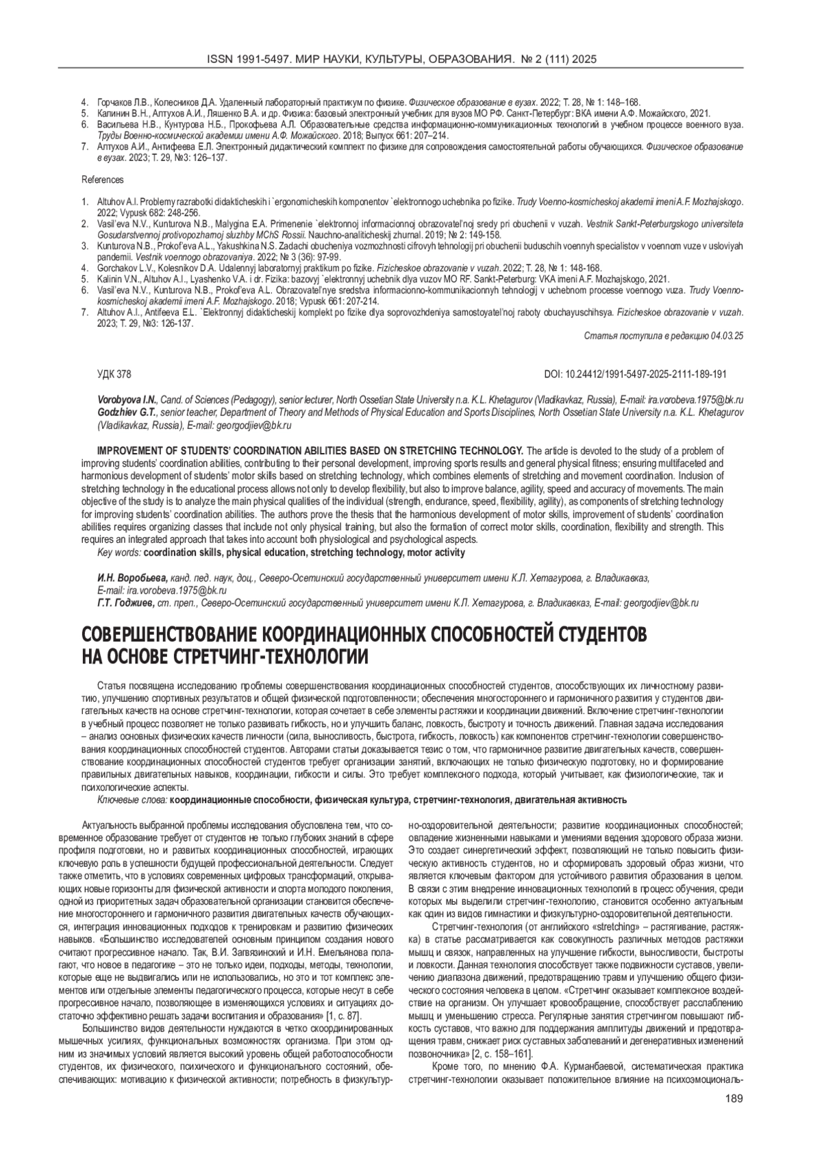 11. Воронкина А.С., Гончарук Я.А. Ловкость как физическое качество. Синергия наук. 2021; № 59: 448–456.