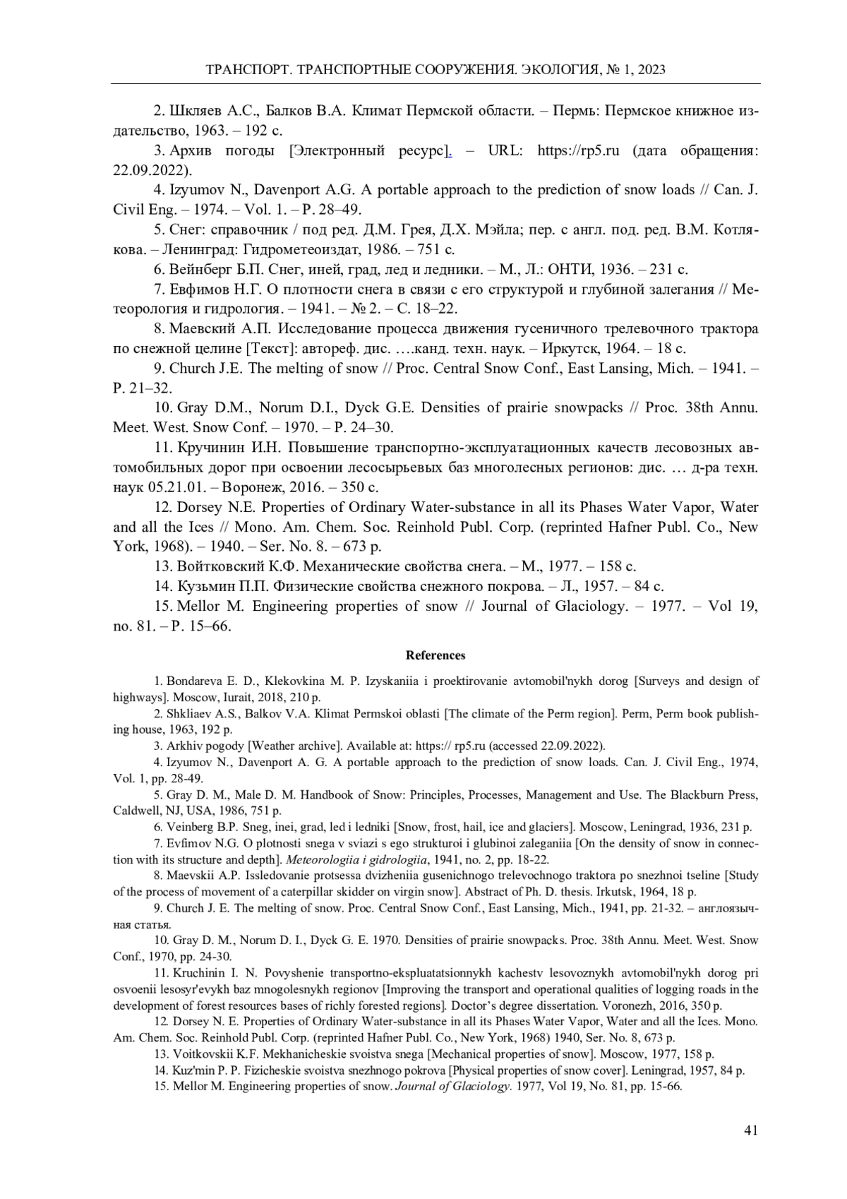 7. Евфимов Н.Г. О плотности снега в связи с его структурой и глубиной залегания // Метеорология и гидрология. - 1941. - № 2. - С. 18-22.
