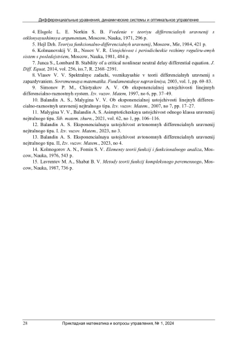 12. Баландин, А.С. Экспоненциальная устойчивость автономных дифференциальных уравнений нейтрального типа. I / А.С. Баландин // Известия вузов. Математика. - 2023. - № 3. EDN: USYUZO