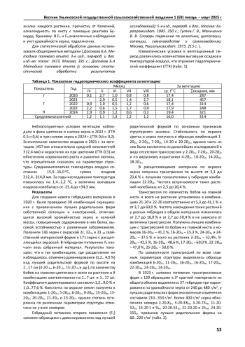 Создание сортов желтого кормового люпина универсального типа использования конкретно для дерново - подзолистых песчаных почв легкого механического состава юго-запада Брянской области весьма актуально как в плане высокобелковой кормовой культуры для животноводства, так и поддержания уровня их плодородия. Для гибридизации привлекли родительские формы местной селекции в реципрокные скрещивания, имеющих высокую специфическую комбинационную способность по высоте люпина, количеству бобов на главной кисти и всего на растении. На основе доминирования в F1, трансгрессии в F2 и наследуемости в F4 по основным признакам структурного анализа и урожайности зерна растений люпина проведены отборы лучших гибридного материала. Из отобранных образцов наследуемость в селекционном питомнике первого года (F4) относительно лучших родительских форм по высоте растений подтвердили 24 комбинации, превысив на 2…13 см с h2 = 0,40, по количеству бобов на главной кисти у 17 номеров на 2.6 шт. с коэффициентом h2 = 0,36. По общему количеству бобов на растении 16 номеров проявили наследуемость с превышением на 2-20 бобов с коэффициентом h2 = 0,68. Урожай зерна у гибридов F3 составил 240.480 г/м2, что выше родительских форм на 20.220 г/м2. С урожайностью 400 - 480 г/м2 выделились образцы 2-20-82с, 3-20-382а, 9-20-734в, 11-20-522с, 13-20-1 и 94в, 17-20132с, 17-20-164в, 22-20-20 и 254d, 20-20-532с, 24-20-1552с. В F4 продуктивность у некоторых образцов гибридного материала и родительских форм оказалась ниже на 7.49 %, но наследуемость у отборов сохранилась. Отмечено преимущество по урожайности зерна на 4.24 % у семи гибридов 11-20-102с, 15-20-72с, 20-20-1142с, 22-20-13 и 232с, 24-20-1102с и 30-20-402а, и три гибрида остались на уровне 2023 г.: 3-20-1022с, 16-20-74в и 24-20-1342с, которые будут исследоваться в питомниках испытания потомств с целью создания нового сорта.