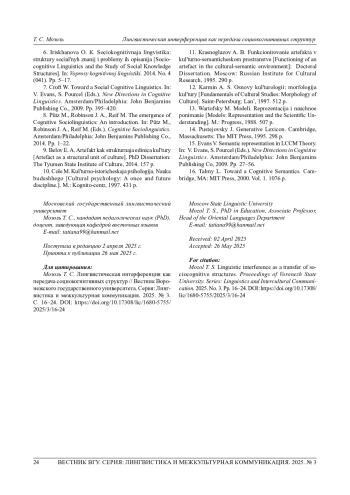 6. Ирисханова О. К. Социокогнитивная лингвистика : структуры социальных знаний и проблемы их описания // Вопросы когнитивной лингвистики. 2014. № 4 (041). C. 5-17.