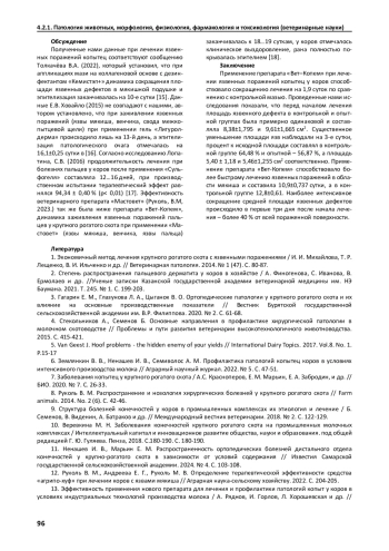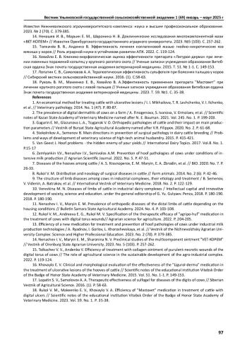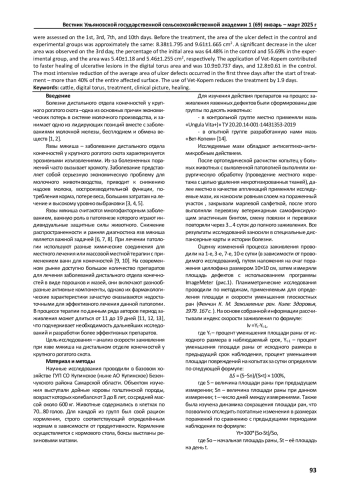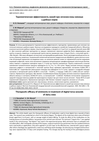 Статья: ТЕРАПЕВТИЧЕСКАЯ ЭФФЕКТИВНОСТЬ МАЗЕЙ ПРИ ЛЕЧЕНИИ ЯЗВЫ МЯКИША У ДОЙНЫХ КОРОВ (2025)