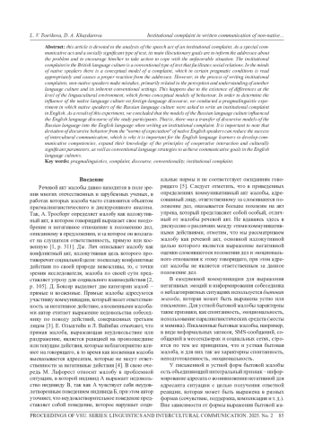 Статья: ИНСТИТУЦИОНАЛЬНАЯ ЖАЛОБА В ПИСЬМЕННОЙ КОММУНИКАЦИИ НЕНОСИТЕЛЕЙ АНГЛИЙСКОГО ЯЗЫКА (2025)