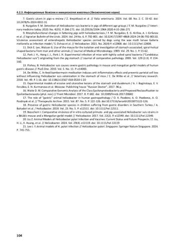 7. Gastric ulcers in pigs-a review / Z. Krepelkova et al. // Folia veterinaria. 2024. Vol. 68. No. 2. С. 33-42. 10.2478/fv-2024-0015 31. DOI: 10.2478/fv-2024-001531 EDN: MQZCDW