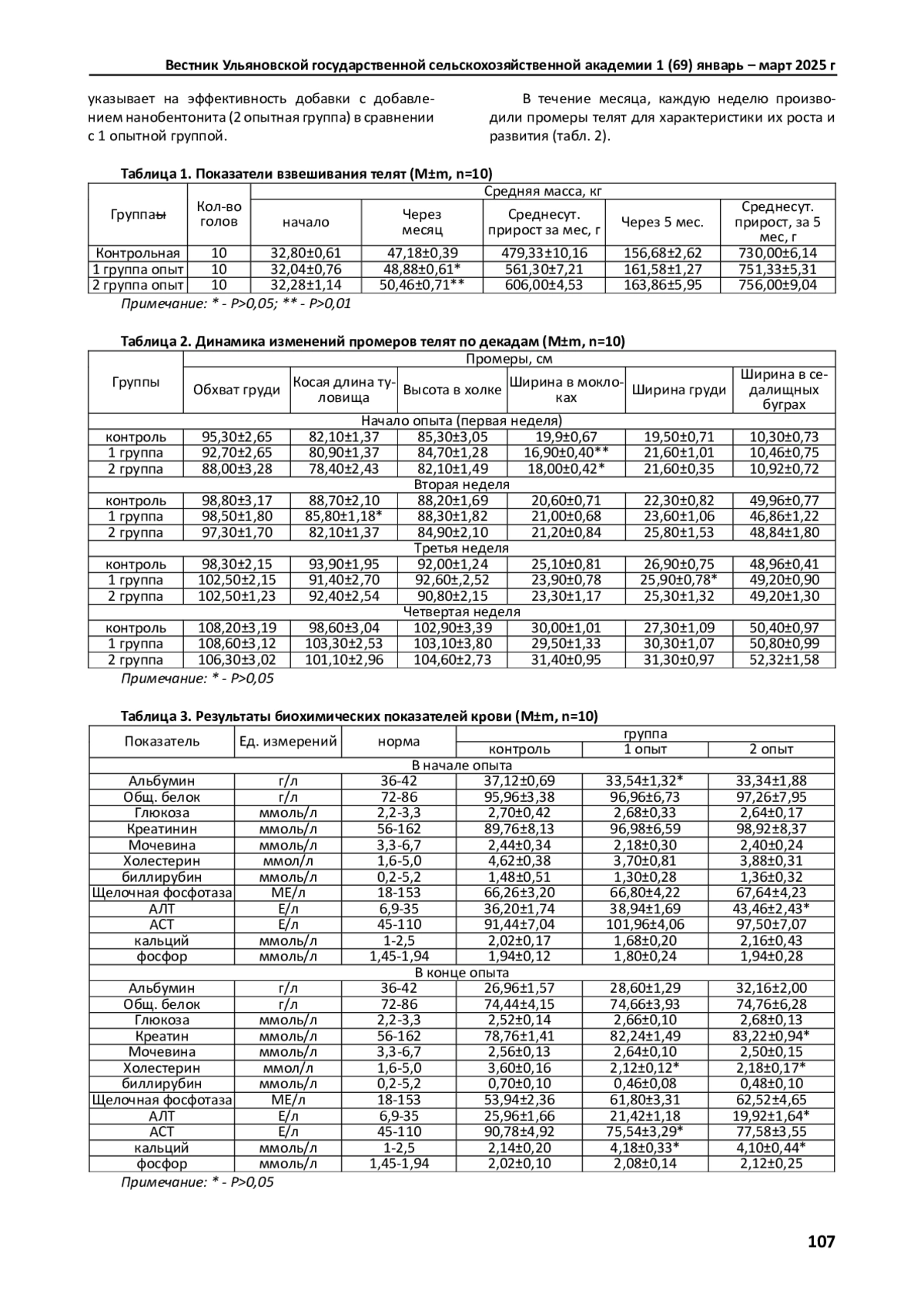 Цель исследования - изучить влияние наноструктурного бентонита на рост, развитие, физиологический статус и биохимические показатели крови телят. Исследование проведено в Республике Татарстан. Объектами исследований были телята черно-пестрой породы, отобранные по принципу аналогов, которые были разделены на 3 группы (контрольная и 2 опытные) по 10 животных в каждой. Животные содержались в одинаковых условиях, и их рационы кормления соответствовали принятым в хозяйстве. Контрольная группа получала основной рацион. Первой опытной группе телят к основному рациону добавляли АсидоБио-ЦИТ- 10 мл/гол. Вторая опытная группа ежедневно получала к основному рациону АсидоБио-ЦИТ -10 мл/гол и нанобентонит в количестве 20 грамм на голову. К первому месяцу эксперимента средняя масса телят в контрольной группе составляла 47,18±0,39 кг, в первой опытной группе 48,88±0,61 кг (Р>0,05), во второй -50,46±0,71 кг (Р>0,01). Относительный прирост в контроле составил 43,84 %, в первой опытной - 52,56 %, во второй опытной группе - 56,32 %, что на 8,72 и 12,48 % больше контроля соответственно. Лучшие показатели по снижению ферментов печени АЛТ также были во 2 опытной группе - на 54,16 % (Р>0,05).