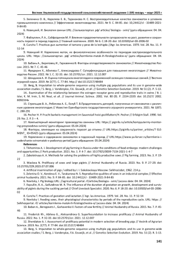 2. Заболотная А. А. Методы решения проблем высокопродуктивных свиноматок // Свиноводство. 2023. № 3. С. 19-22. EDN: TVHJNH