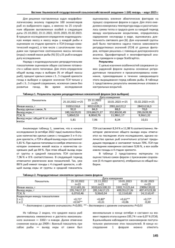 Исследования проводили с целью выявления возможности использования концентрированной водной вытяжки из ствола сосны в качестве биостимулятора яровой твердой пшеницы сорта Безенчукская золотистая. Полевые эксперименты проводились в течение 2022-2024 гг. в Самарской области. Опыт предусматривал три варианта норм использования препарата для предпосевной обработки семян: 3,0; 3,5; 4,0 л и три варианта норм: 4,0; 4,5; 5,0 л. для двукратного воздействия на растительный организм - обработки семян и опрыскивания вегетирующих растений. В контрольном варианте обработку семян и растений не проводили препаратом. Все варианты опыта размещали при естественном и искусственном орошении на удобренном фоне в норме: N40P40K40. Почва опытного поля - чернозем обыкновенный. Агротехника- общепринятая для яровой пшеницы, базирующаяся на безотвальной обработке пахотного горизонта. Погодные условия в годы исследований были характерными для южной агроклиматической зоны Самарского Заволжья. ГТК в период роста и развития опытных посевов в 2022 г. равнялся 0,53, а в 2023 и 2024 гг. соответственно 0,62 и 0,49. Орошение опытных посевов выполняли фронтальной дождевальной машиной BAUER OneAqua. Применение концентрированной водной вытяжки из ствола сосны при выращивании яровой твердой пшеницы позволяет влиять на продуктивность растений. При этом наиболее эффективной нормой расхода препарата является 4,5 л с дробным ее применением, используя 3,5 л - для предпосевной обработки 1 тонны семян и 1,0 л - для опрыскивания 1 га посевов. В этом случае обеспечивается прибавка урожая зерна на неорошаемом участке 15,8 %, а в условиях орошения - 17,8 % при полной экономической окупаемости производственных затрат.