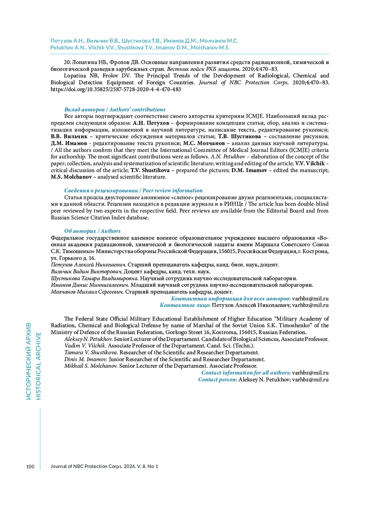 Журнал: ВЕСТНИК ВОЙСК РХБ ЗАЩИТЫ