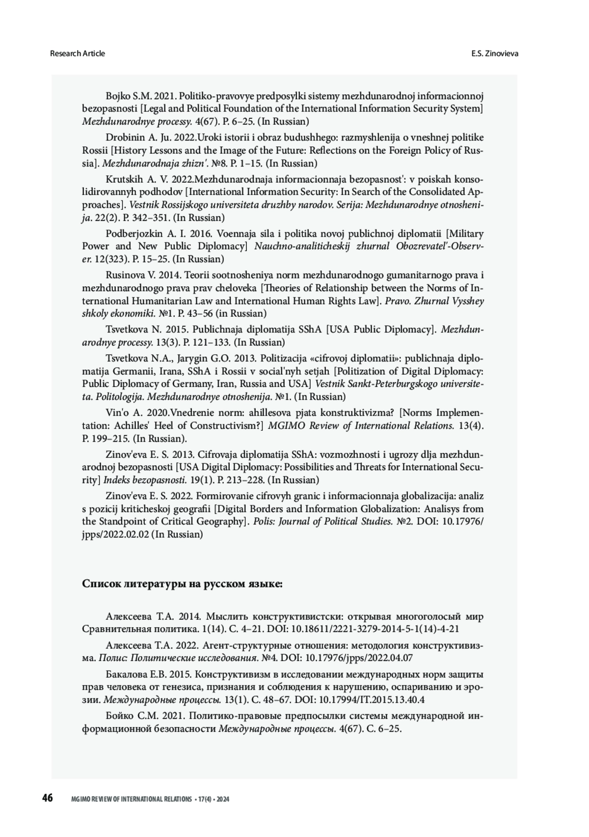 4. Бойко С.М. 2021. Политико-правовые предпосылки системы международной информационной безопасности Международные процессы. No4 (67). С. 6 -25.