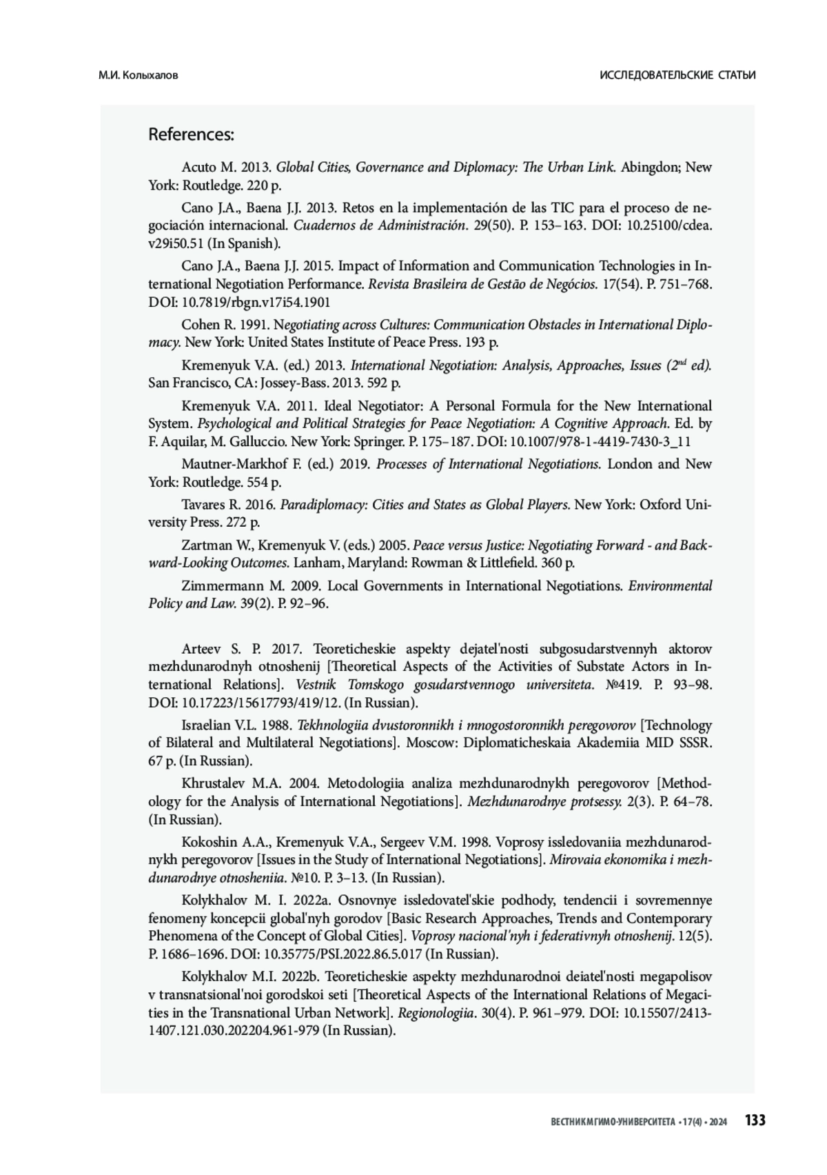 15. Колыхалов М.И. 2022b. Теоретические аспекты международной деятельности мегаполисов в транснациональной городской сети. Регионология. 30(4). С. 961-979. https://doi.org/10.15507/2413-1407.121.030.202204.961-979