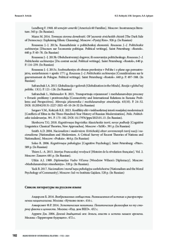 8. King J. 2021. The International Politics of Amour Propre: Revisiting Rousseau’s Place in International Relations Theory. Journal of International Political Theory. №18. P. 167-185. https://doi.org/10.1177/1755088220983832.