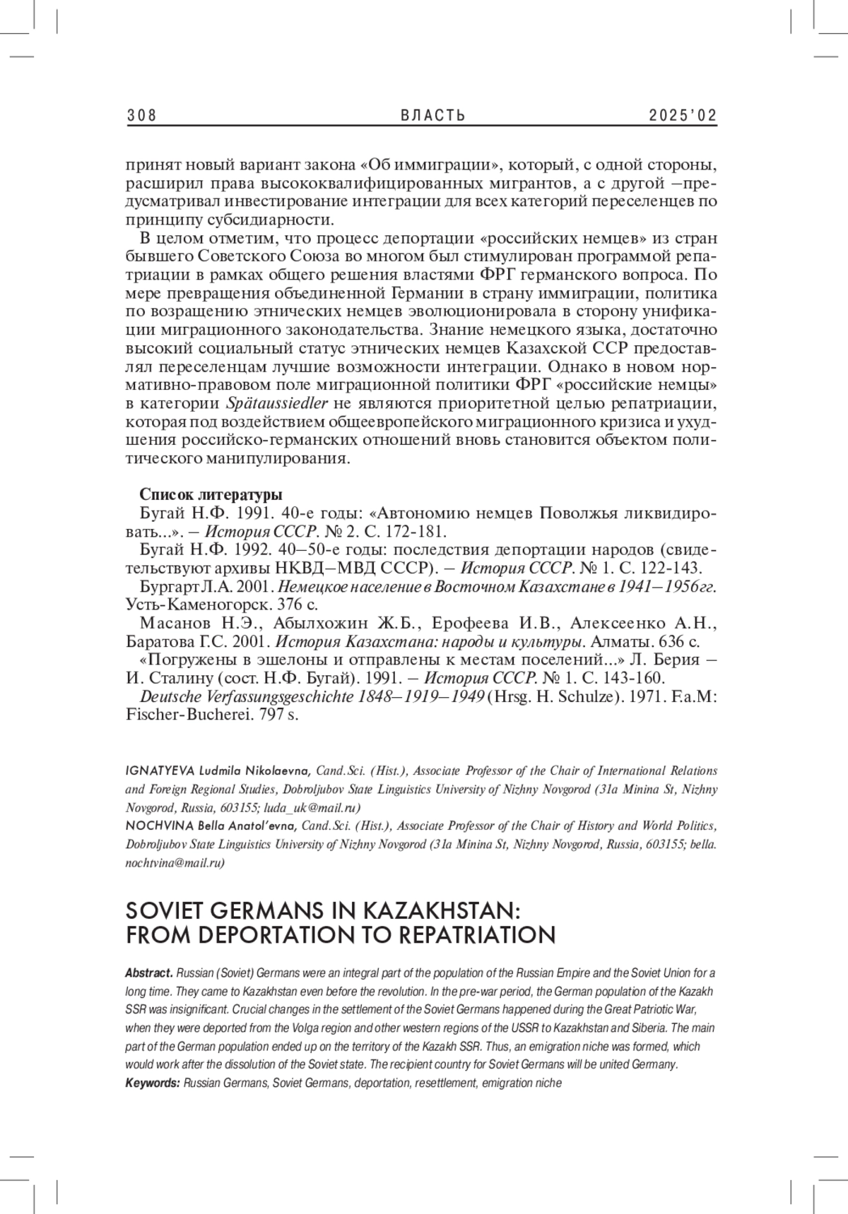 1. Бугай Н.Ф. 1991. 40-е годы: “Автономию немцев Поволжья ликвидировать…”. - История СССР. № 2. С. 172-181.