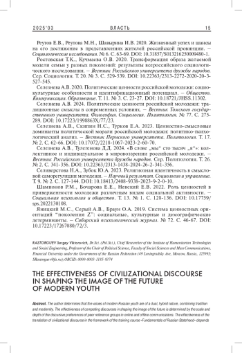 18. Селезнева А.В., Тулегенова Д.Д. 2024. “В слове.,мы” сто тысяч.,я“: коллективное и индивидуальное в мировоззрении российской молодежи. - Вестник Российского университета дружбы народов. Сер. Политология. Т. 26. № 2. С. 341-356. DOI: 10.22363/2313-1438-2024-26-2-341-356 EDN: MPJWST