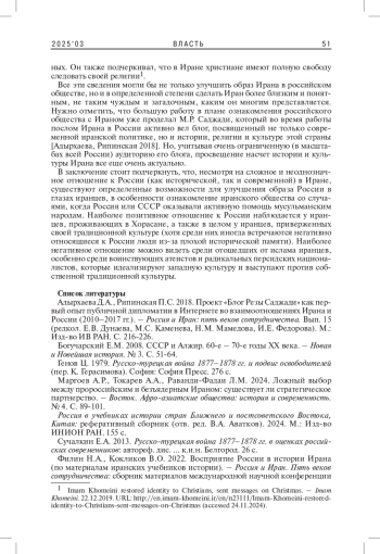 7. Филин Н.А., Кокликов В.О. 2022. Восприятие России в истории Ирана (по материалам иранских учебников истории). - Россия и Иран. Пять веков сотрудничества: сборник материалов международной научной конференции (под ред. А.Б. Безбородова, В.В. Наумкина, А.К. Аликберова). М.: Изд-во РГГУ. С. 191-200. EDN: CWPHDY