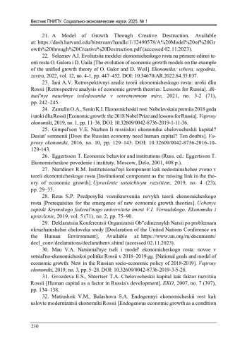 24. Замулин, О.А. Экономический рост: Нобелевская премия 2018 года и уроки для России / О.А. Замулин, К.И. Сонин // Вопросы экономики. - 2019. - № 1. - С. 11-36. DOI: 10.32609/0042-8736-2019-1-11-36 EDN: YTNWLB