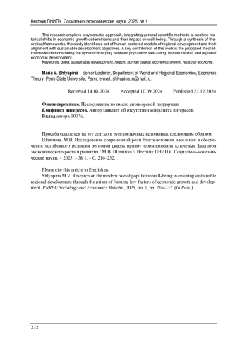 1. Шляпина, М.В. Эволюция категории “благосостояние”: от человекоутилизирующей до человекоориентированной парадигмы / М.В. Шляпина // Вестник Пермского национального исследовательского политехнического университета. Социально-экономические науки. - 2022. - № 4. - С. 359-376. DOI: 10.15593/2224-9354/2022.4.24
