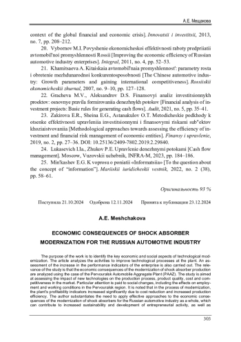 20. Выборнов, М.И. Повышение экономической эффективности работы предприятий автомобильной промышленности России / М.И. Выборнов // Интеграл. - 2011. - № 4. - С. 52-53. EDN: ONUHUP