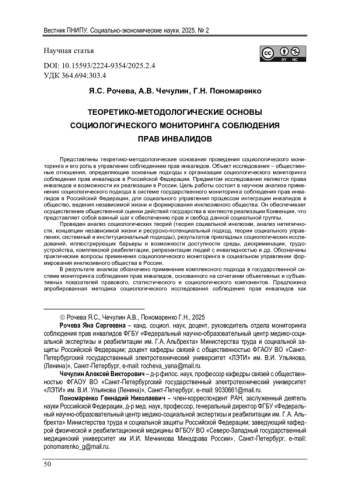 8. Рочева, Я.С. Проблемы изучения социальной инклюзии инвалидов в современном обществе / Я.С. Рочева, А.Л. Шавонин // Социология. - 2024. - № 10. - С. 124-227. DOI: 10.24412/1812-9226-2024-10-124-127