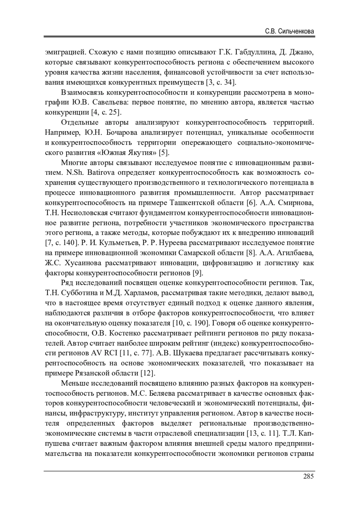 3. Габдуллина, Г.К. Анализ подходов к сущности понятия “конкурентоспособность региона” / Г.К. Габдуллина, Д. Джано // Индустриальная экономика. - 2021. - № 3-2. - С. 34-38. DOI: 10.47576/2712-7559_2021_3_2_34 EDN: SCWRSJ