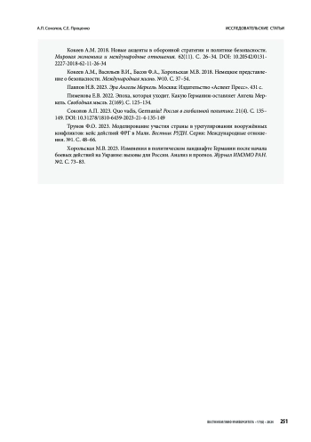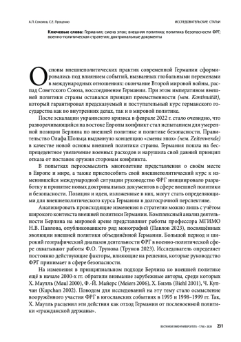 Ключевые фразы: Германия, смена эпох, внешняя политика, политика безопасности фрг, военно-политическая стратегия, доктринальные документы