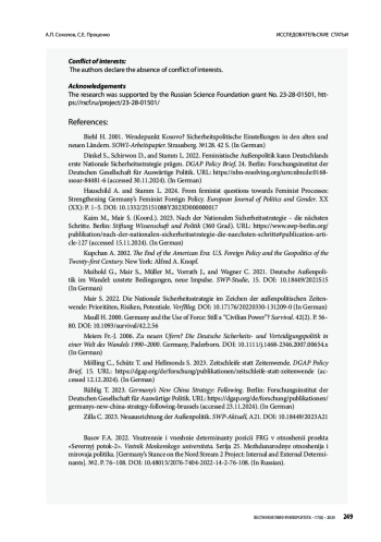 Исследование посвящено анализу германских доктринальных документов, опубликованных правительством Олафа Шольца в контексте объявленной им в 2022 г. «смены эпох», среди которых: Стратегия национальной безопасности, Руководящие принципы по формированию феминистской внешней политики, Стратегия в отношении Китая и Руководящие принципы оборонной политики. Происходящие в стратегической культуре ФРГ изменения представляют особый интерес, поскольку носят беспрецедентный характер и направлены на создание из германского государства полноценного игрока в военной политике. В качестве реакции на начало специальной военной операции России на Украине Берлин взял курс на укрепление силового компонента своей политики и приступил к отправке оружия Киеву, нарушив послевоенный принцип отказа от поставок вооружений сторонам конфликта. Статья отвечает на вопрос о том, как внутригерманская дискуссия по военно-политической проблематике отражается в публикуемых министерствами и ведомствами ФРГ руководящих документах. Участники данной дискуссии условно разделены на три группы: те, кто поддерживает как идею Zeitenwende, так и усилия правительства на данном направлении; те, кто поддерживает идею Zeitenwende, но не согласен с методами или инструментами её реализации; противники «смены эпох» в целом. Методом качественного контент-анализа опубликованных документов выявляются противоречия как в их содержании, так и в процессах реализации Берлином заявленных целей. Отмечается, что многие формулировки носят расплывчатый характер и, следовательно, могут быть изменены или дополнены в дальнейшем. Большое влияние на содержание новых документов оказывает партия «Союз 90 / Зелёные», которая задаёт воинственную риторику и отстаивает расширительное понимание проблем безопасности. Полученные результаты исследования позволяют сделать вывод о том, что на практике германский подход более сбалансирован и осторожен, чем артикулируемые руководством ФРГ внешнеполитические установки. Тем не менее, сам факт закрепления в стратегических документах идей «смены эпох» придаёт им долгосрочный характер и делает невозможным их игнорирование будущим правительством страны.