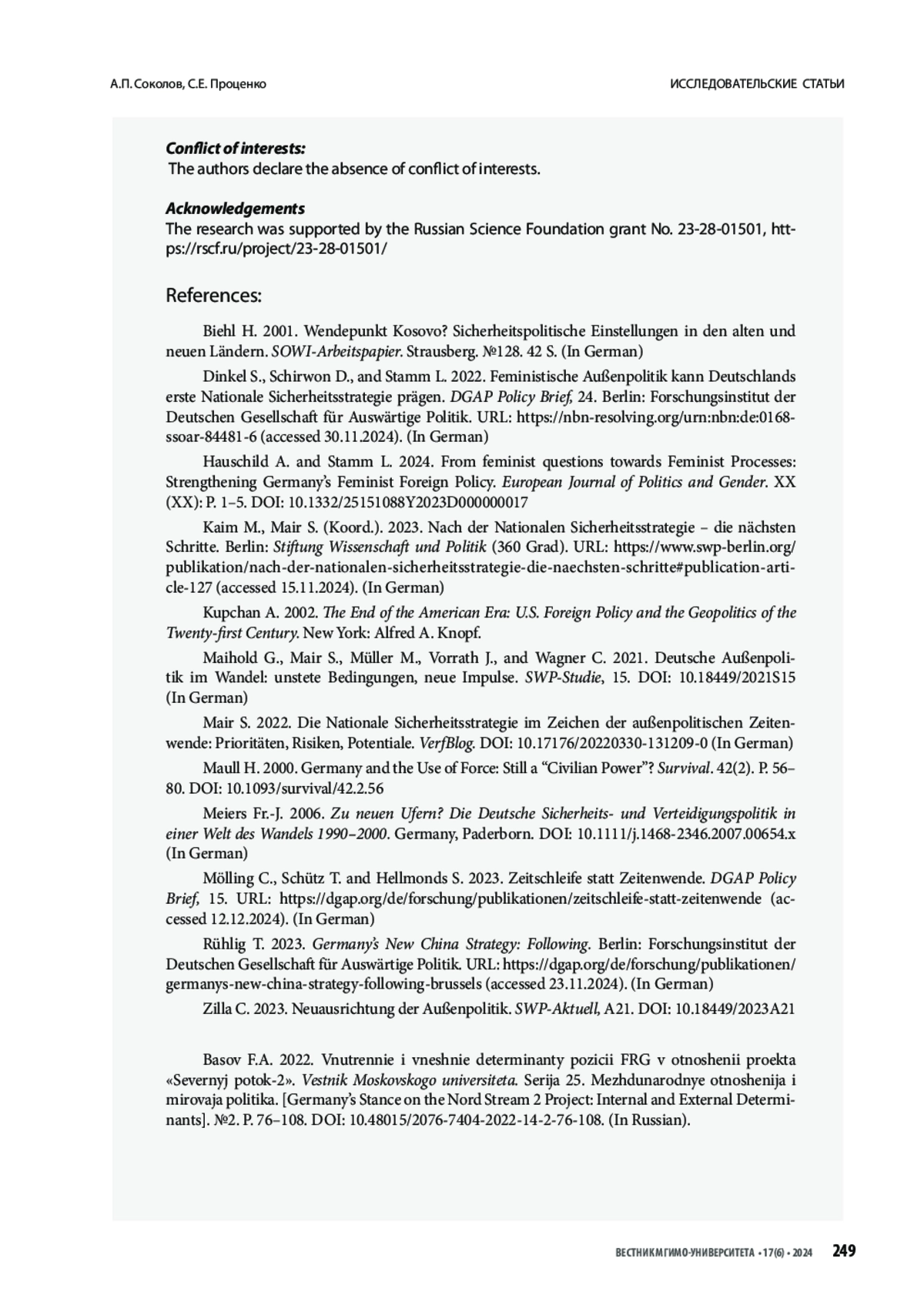 СОКОЛОВ А. П., ПРОЦЕНКО С. Е. КОНЦЕПЦИЯ ZEITENWENDE В ЗЕРКАЛЕ СТРАТЕГИЧЕСКИХ ДОКУМЕНТОВ ПРАВИТЕЛЬСТВА ОЛАФА ШОЛЬЦА // ВЕСТНИК МГИМО-УНИВЕРСИТЕТА. 2024. ТОМ 17, № 6