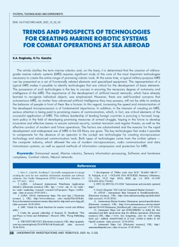 Статья: ТЕНДЕНЦИИ И ПЕРСПЕКТИВЫ ТЕХНОЛОГИЙ СОЗДАНИЯ МОРСКИХ РОБОТОТЕХНИЧЕСКИХ СИСТЕМ ДЛЯ ВЕДЕНИЯ ОПЕРАЦИЙ И БОЕВЫХ ДЕЙСТВИЙ НА МОРЕ ЗА РУБЕЖОМ (2025)