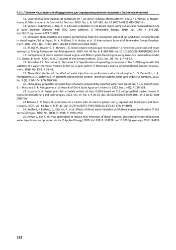 14. Venu H., Subramani L., Raju V. D. Emission reduction in a DI diesel engine using exhaust gas recirculation (EGR) of palm biodiesel blended with TiO2 nano additives // Renewable Energy. 2019. Vol. 140. P. 245-263. DOI: 10.1016/j.renene.2019.03.078