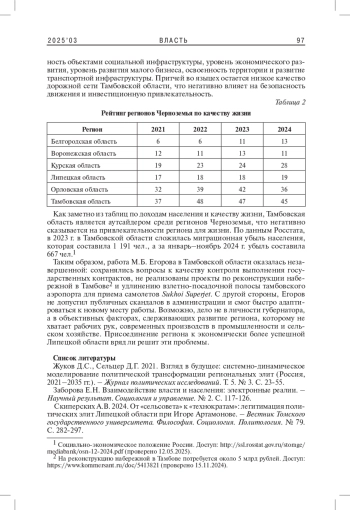 1. Жуков Д.С., Сельцер Д.Г. 2021. Взгляд в будущее: системно-динамическое моделирование политической трансформации региональных элит (Россия, 2021-2035 гг.). - Журнал политических исследований. Т. 5. № 3. С. 23-55. EDN: OAJHIE