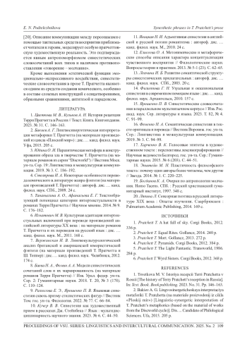 16. Фененко Н. А. Семантическая синестезия в тексте оригинала и перевода // Вестник Воронеж. гос. ун-та. Сер.: Лингвистика и межкультурная коммуникация. 2019. № 3. С. 94-99.