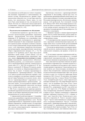 7. Schmid W. P. Die alteuropaische Hydronymie: Stand und Aufgaben ihrer Erforschung // Beitrage zur Namenforschung. 1981. Neue Folge 16. S. 1-12.