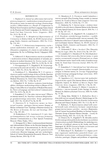 14. Гусейнова Л. Д. и др. Отражение социокультурного контекста в русских, французских и азербайджанских интернет-мемах // Вестник Рос. ун-та дружбы народов. Сер.: Теория языка. Семиотика. Семантика. 2022. № 13 (4). С. 1020-1043. EDN: INAPKU