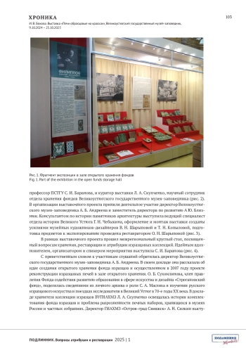 «Печи обрасцовые на красках» – выставка с таким названием открылась 9 октября 2024 года в зале открытого хранения фондов Великоустюгского государственного музея-заповедника и представляет художественную традицию, присущую изразцовому делу Великого Устюга. Ее оригинальные черты раскрывают предметы из коллекции музея, насчитывающей более пяти тысяч экспонатов. На выставке представлено более трехсот предметов. Это отдельные изразцы, печные клейма и полностью сохраненные печные комплекты, многие из которых экспонируются впервые. Впервые показаны архивные документы, рисунки, фотографии из музейных и частных архивов и коллекций. В их числе фотографии изразцовых печей и печные комплекты, атрибуция которых стала возможной благодаря материалам архива А. В. Филиппова, предоставленным доктором искусствоведения Е. А. Бобринской (рис. 1).
