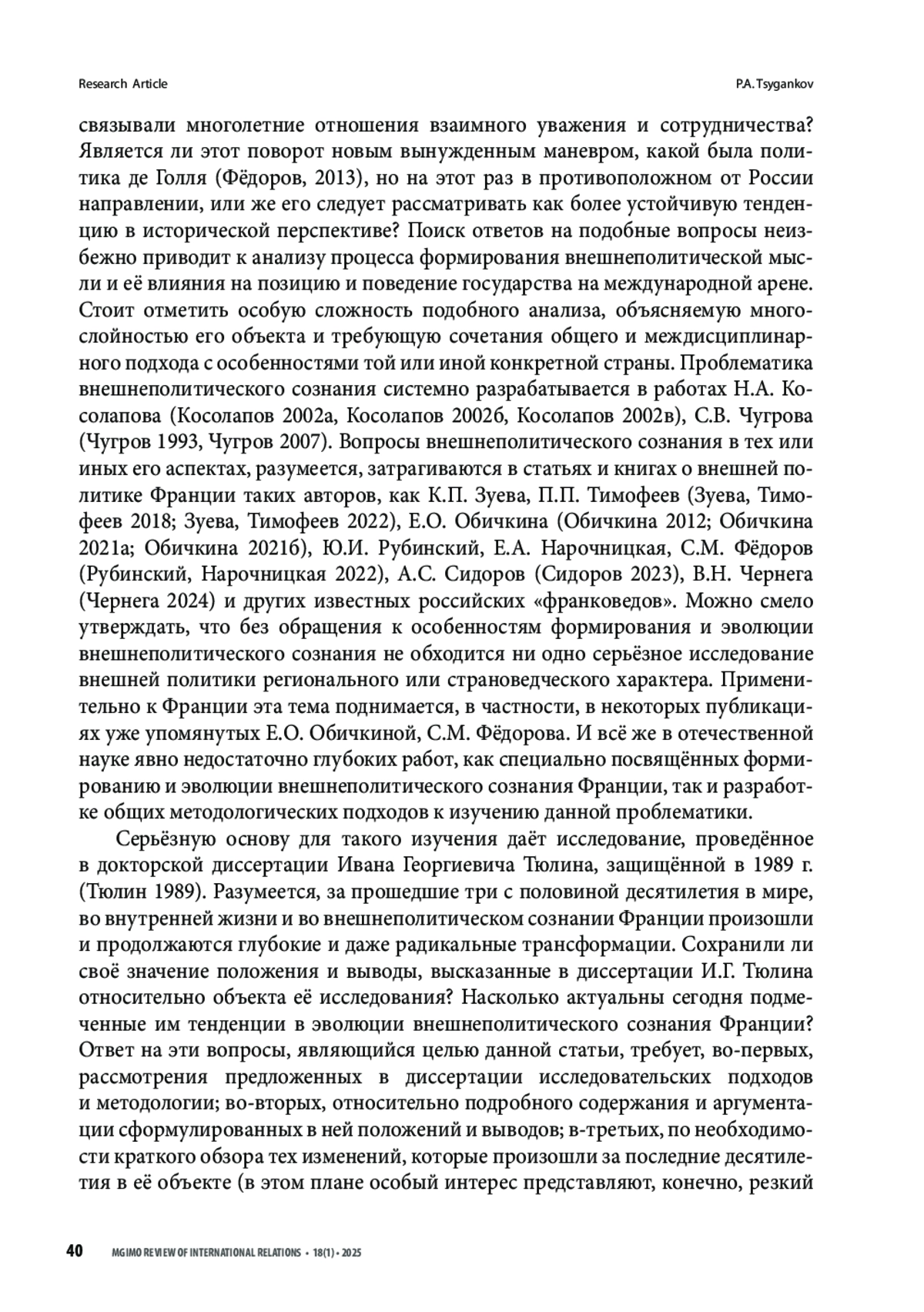 40. Цыганков П.А. 2012. Особенности французской геополитики. Международные процессы. 10(28): 81-86.