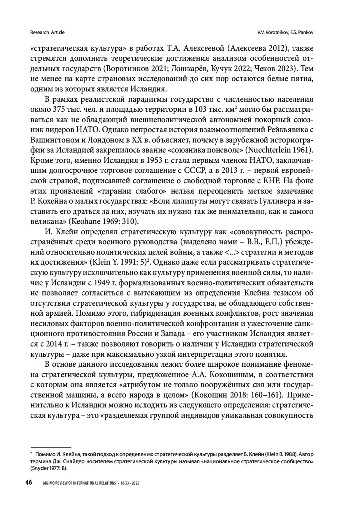 16. Klein B.S. 1988. Hegemony and Strategic Culture: American Power Projection and Alliance Defence Politics. Review of International Studies. 14(2). P. 133-148.