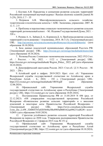 11. Постановление Правительства РФ от 31.05.2019 N 696 (ред. от 22.12.2023) “Об утверждении государственной программы Российской Федерации “Комплексное развитие сельских территорий” и о внесении изменений в некоторые акты Правительства Российской Федерации” / [Электронный ресурс] URL: https://www.consultant.ru/document/cons_doc_LAW_326085/343a0203b40a3f8e8905a0b80162aa696231ed82/#:~:text=%D0% (дата обращения 10.05.2024).
