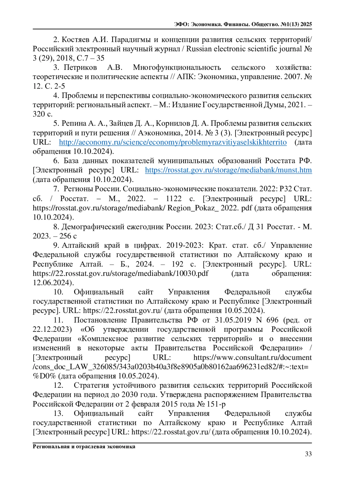 2. Костяев А.И. Парадигмы и концепции развития сельских территорий // Российский электронный научный журнал. 2018, № 3 (29), С.7 - 35. DOI: 10.31563/2308-9644-2018-29-3-7-35