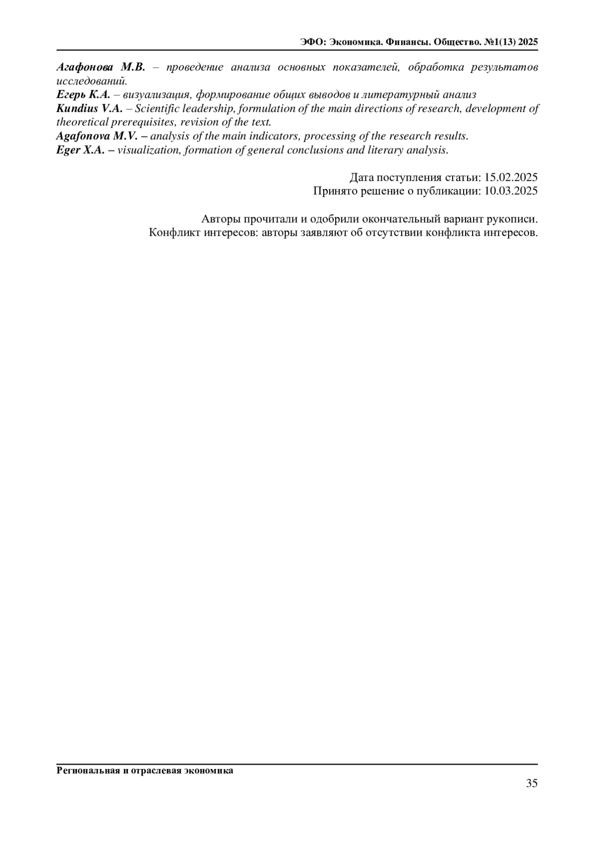 17. Агафонова М.В., Кундиус В.А. Диверсификация сельской экономики как направление системного развития региона (на примере Алтайского края). Аграрная наука - сельскому хозяйству: сборник материалов: в 2 кн. / XIX Международная научно-практическая конференция, Барнаул, 8-9 февраля 2024 г. - Барнаул: РИО Алтайского ГАУ, 2024. - Кн. 1. - C. 10-12.