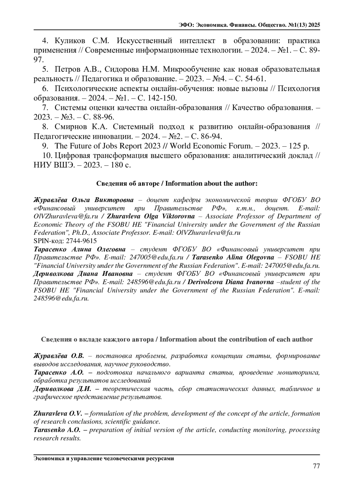 4. Куликов С.М. Искусственный интеллект в образовании: практика применения // Современные информационные технологии. - 2024. - №1. - С. 89-97.